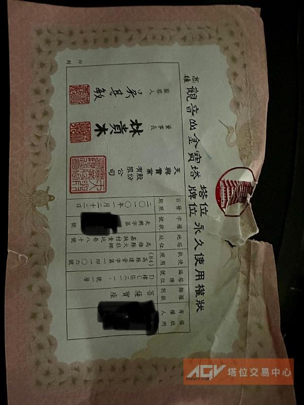高雄大社】觀音山金寶塔 單人塔位轉讓 繼承件 權狀在手 誠售25000