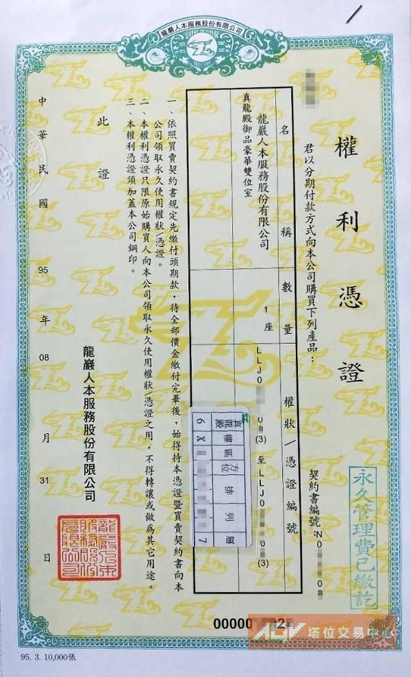 北部地區-龍巖白沙灣安樂園-龍巖塔位6人家族塔7/8樓