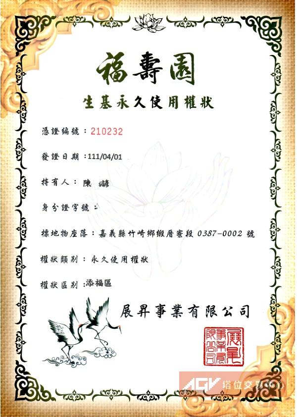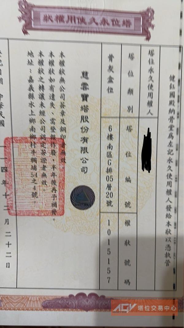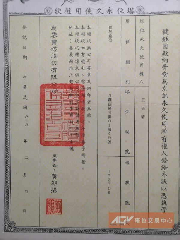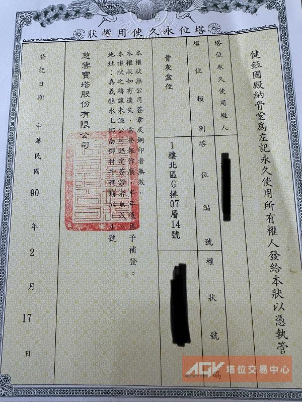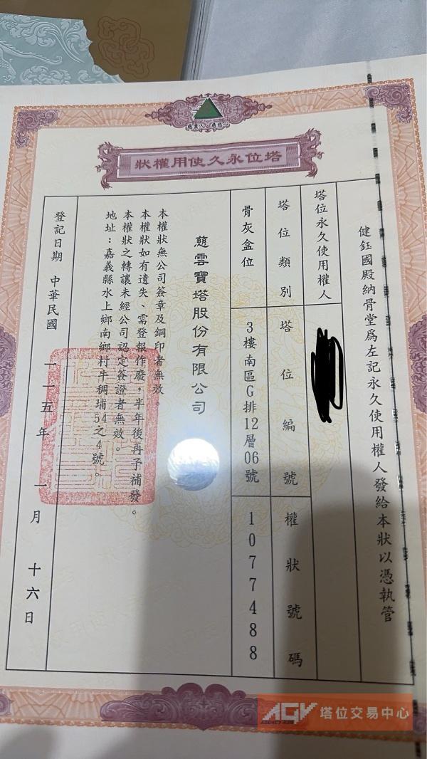 慈雲塔位(已使用過,含永久管理費,意者價錢可議)