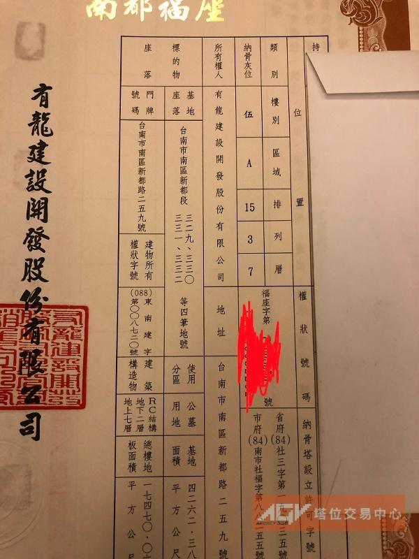 南寶寺 魚龍山 塔位 3排5號6層1個 塔位