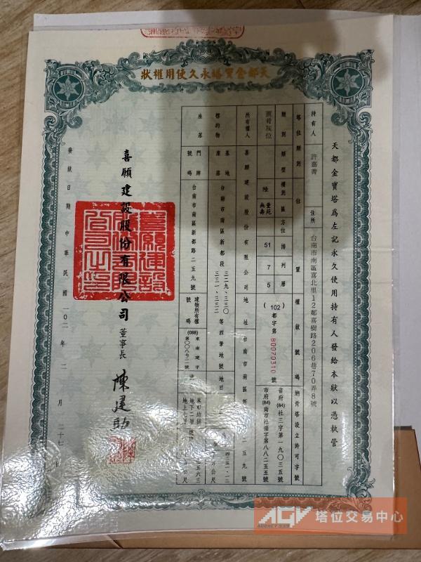 台南國寶南都889排六列1層-天都金寶塔