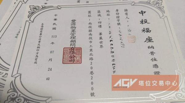 10萬含過戶費 國寶中投福座四樓華嚴世界個人牌位|龍穴寶地|永久安寧之所