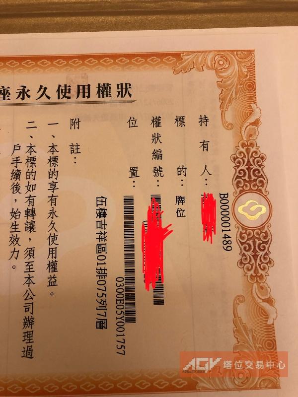 塔位一,牌位木牌一