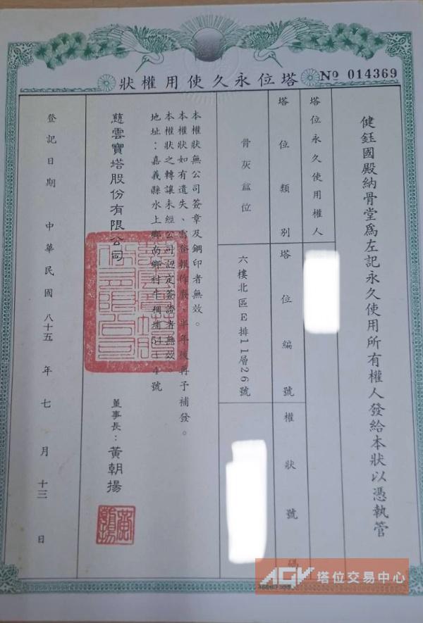 過戶費金額(新台幣) : 1,000